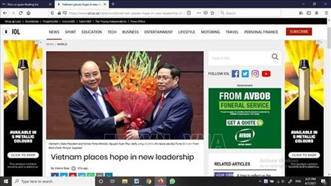 Le site web de la Radio d’Argentine a publié le 6 avril un article soulignant la stabilité politique et économique du Vietnam. Le nouveau Premier ministre Pham Minh Chinh est considéré comme un homme politique d'avant-garde, avec des idées innovantes, notamment dans le domaine des investissements. Sa vision politique est conforme aux orientations du XIIIe Congrès national du PCV tenu en janvier dernier, selon l’article.