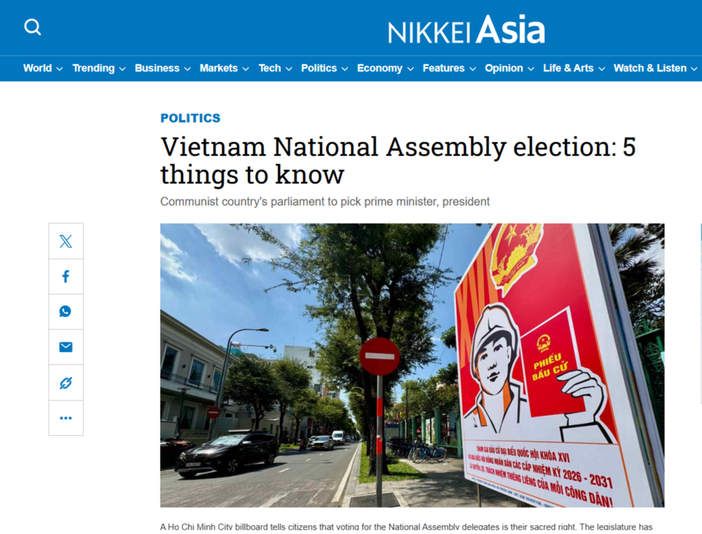| Le site japonais Nikkei estime que ces élections reflètent l’exercice du droit de souveraineté du peuple et la participation des citoyens à la vie politique du Vietnam. |