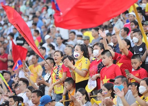 | Les supporteurs vietnamiens au stade de Thiên Truong, province de Nam Dinh. |