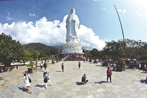 | Touristes à la pagode Linh Ung, ville de Dà Nang (Centre). |