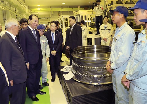 | Le président Trân Dai Quang (2e à gauche) lors de sa visite à l'usine de Koganei Seiki Co à Gunma. |