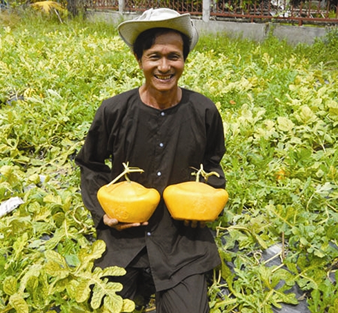 «C’est mon nouveau bébé. En 2008, j’avais créé le melon - lingot d’or, et ça avait bien marché. Et en 2005, j’en avais fait un cube», indique avec fierté Trân Thanh Liêm, 60 ans, propriétaire d’une plantation de melons, dans le district de Binh Thuy, à Cân Tho. Le sourire aux lèvres, le paysan un peu chétif nous raconte ses aventures.