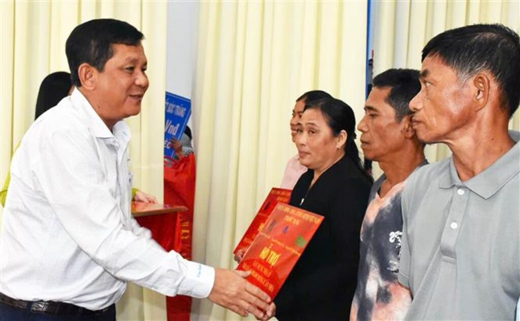 | Duong Sa Kha, secrétaire du Comité du Parti de Vinh Châu, province de Soc Trang (delta du Mékong), a offert de nouvelles maisons aux ménages pauvres avant le Nouvel An lunaire. |