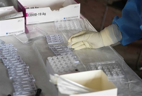 | Tests de dépistage du COVID-19 à New Delhi, en Inde, le 18 août, sur des échantillons prélevés sur des travailleurs migrants dans une gare de bus. |