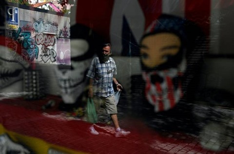 | Un passant masqué dans une rue de Madrid, le 18 août. |