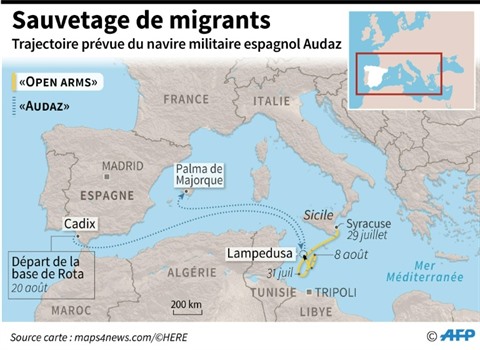 Face au refus du ministre de l'Intérieur italien sortant Matteo Salvini de les laisser débarquer, Madrid avait fini mardi 20 août par envoyer un navire militaire vers Lampedusa pour venir y prendre en charge directement les migrants et les amener à Majorque, à environ 1.000 km de la Sicile.