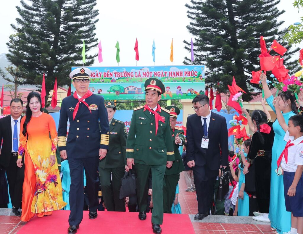 Lors de leur visite à l’École primaire Dông Dang, les deux ministres de la Défense ont assisté à l’inauguration d’un nouveau bâtiment polyvalent composé de 12 salles, dont une salle informatique, offert par le ministère vietnamien de la Défense.