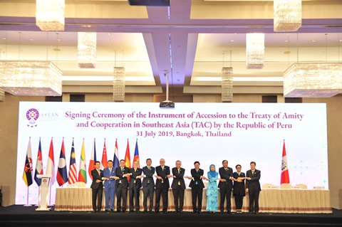 À cette occasion, les ministres des Affaires étrangères de l’ASEAN ont signé un document visant à élargir le Traité d’amitié et de coopération en Asie du Sud-Est (TAC), permettant ainsi au Pérou d’y adhérer, ce qui porte ainsi à 38 le nombre total de ses membres.