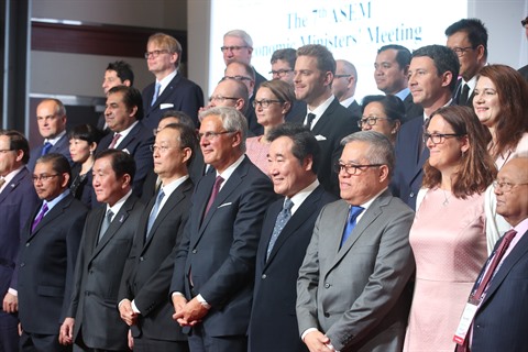 | Photo de famille des ministres économiques du Forum Asie-Europe (ASEM), le 22 septembre |