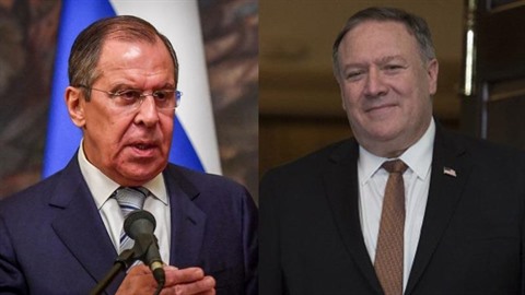 | Le secrétaire d'État américain Mike Pompeo (droite) et de son homologue russe Sergueï Lavrov. |