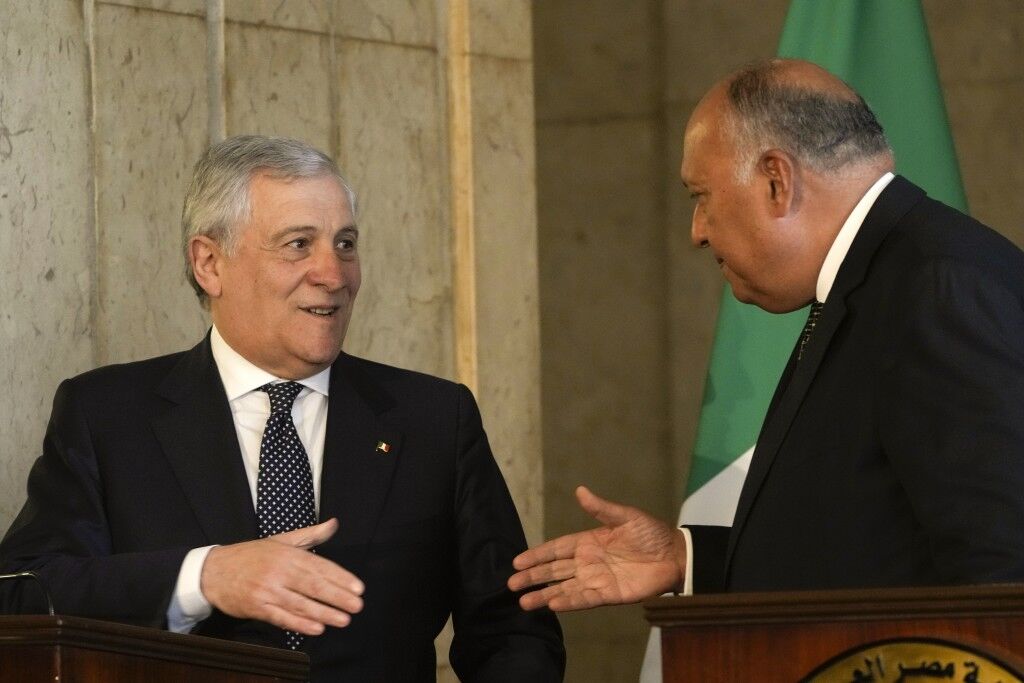 | Le ministre égyptien des Affaires étrangères (droite) Sameh Choukri et son homologue italien Antonio Tajani lors d'un événement début de 2023. |