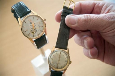 | Le célèbre modèle "Himalaya" des montres LIP dans son ancienne et sa nouvelle version (au 2e plan), le 6 mai 2015 à Châtillon-le-Duc, près de Besançon. Photo: AFP/VNA/CVN |
