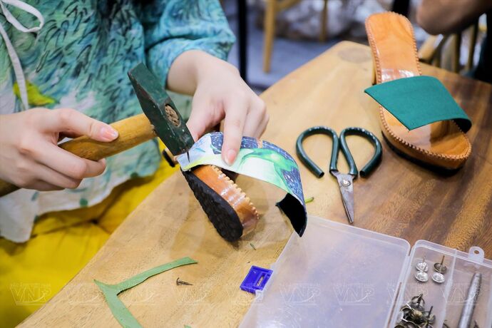 >> Une jeune femme remet les sandales en bois traditionnels au goût du jour