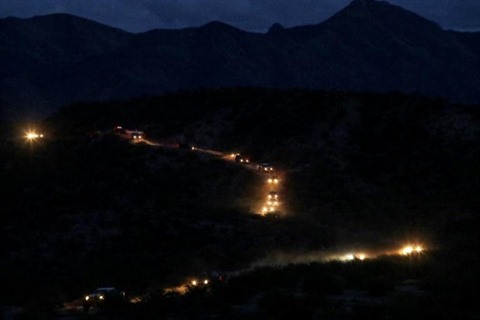 | Un convoi de voitures de Mormons arrive des États-Unis pour les obsèques de Mormons tués au Mexique, le 6 novembre près de Bavispe, État de Sonora |