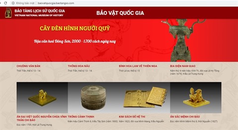 En cliquant sur le site web du Musée national d’histoire du Vietnam (MNHV), les spectateurs peuvent admirer, en 3D, les images des objets précieux, inestimables de l’exposition "Trésors nationaux". Par exemple Trông dông Ngoc Lu (Tambour en bronze de Ngoc Lu, datant d’il y a environ 2.500 ans), Mô thuyên Viêt Khê (Le cercueil en forme de pirogue Viêt Khê, datant d’il y a environ 2.500 ans), ou Bia Vo Canh (La stèle de Vo Canh, entre les IIIe et IVe siècles), entre autres. En plus d’images, on peut trouver des explications et commentaires qui donnent des informations intéressantes sur chaque artefact.