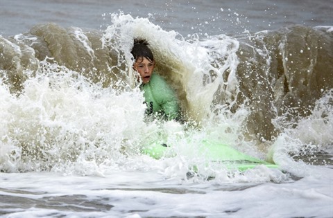 | Un enfant apprend à faire du surf sur une plage des Pays-Bas, à Noordwijk, le 28 juillet. |