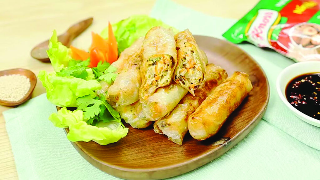 - Versez de l’huile dans une poêle, et, à feu moyen, faire revenir les nems quelques minutes de chaque cotés pour qu’ils soient dorés et croustillants.