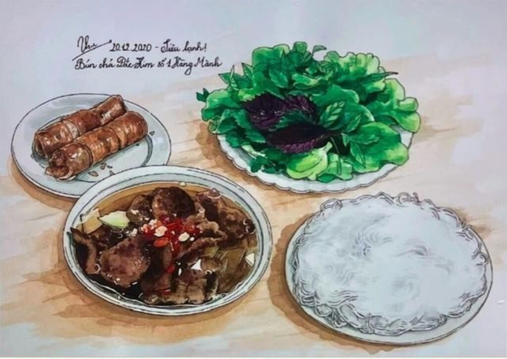 | Une peinture de Thu Hang dans le projet de carnet de croquis "Saveurs de Hanoi". |
