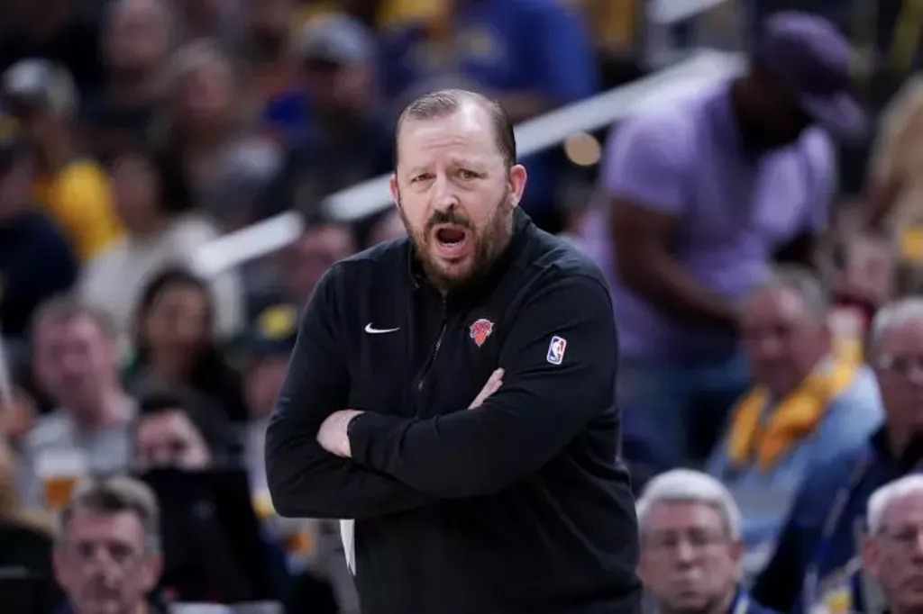 | L'entraîneur Tom Thibodeau, des New York Knicks, pendant le quatrième match contre les Indiana Pacers lors des demi-finales de la Conférence Est, à Indianapolis. |