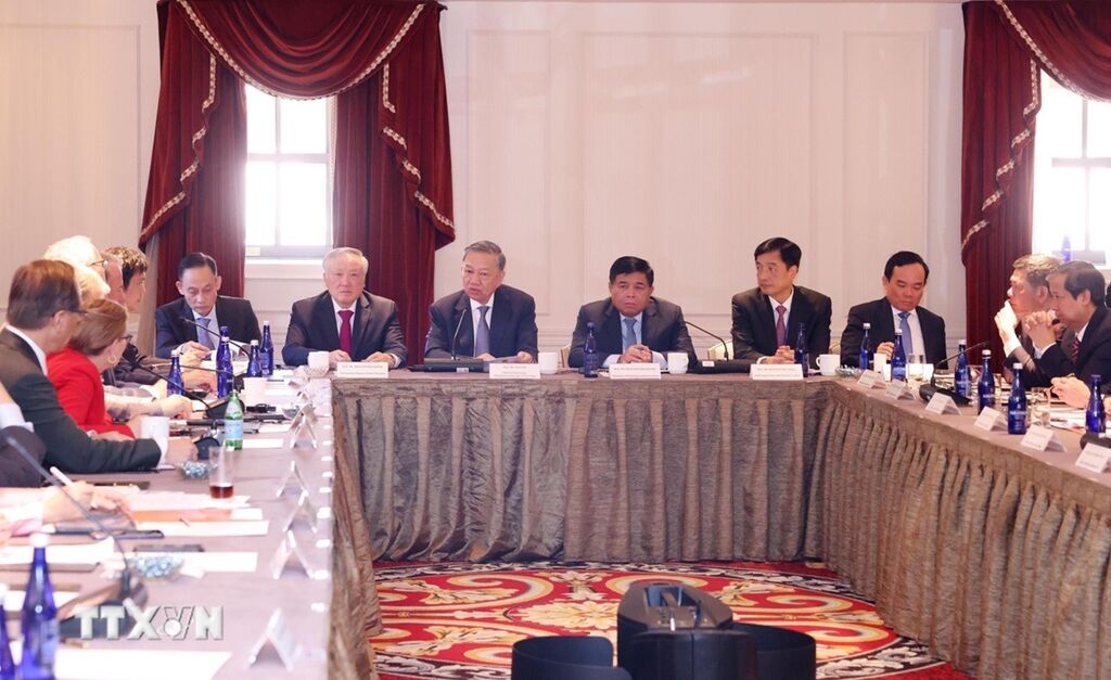 Tô Lâm a souhaité que les investisseurs américains augmentent leurs investissements dans les domaines tels que la science et la technologie, l'innovation, la recherche et le développement, l’économie verte, l’économie numérique, l’économie circulaire, l’économie de la connaissance, le développement des industries des puces et des semi-conducteurs, de l’intelligence artificielle (IA) et de l’Internet des objets (IOT), l’énergie renouvelable...