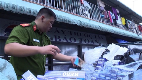 | La confiscation du tabac illégal par les autorités vietnamiennes. |