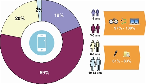 | La plupart des trois à cinq ans utilisent les outils numériques pour jouer. |