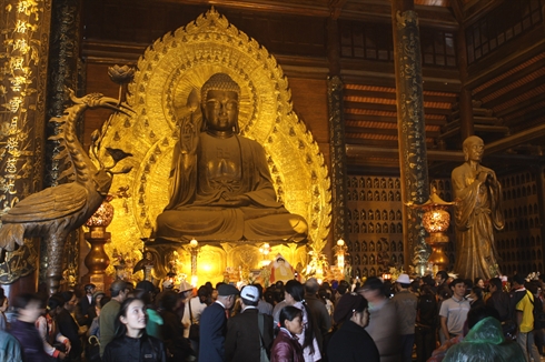 | La pagode Bai Dinh dispose de grandes statues de Bouddha en cuivre. |