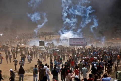 | Des Palestiniens manifestent à Gaza contre l'inauguration de l'ambassade américaine à Jérusalem, le 14 mai. |