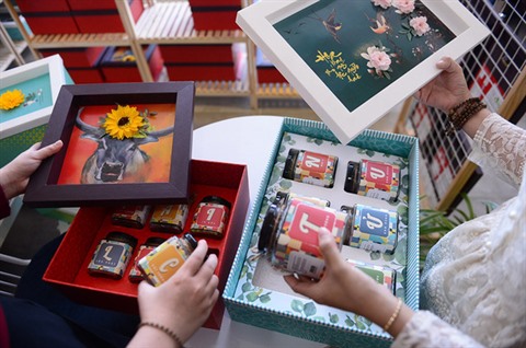 "Nous nous focalisions autant sur la conception artistique que l’étude des matières afin que ceux qui offrent les cadeaux soient aussi fiers que ceux qui les reçoivent", souligne la directrice générale de la société Gia Long. Avant d’ajouter que les coffrets oscillent de 400.000 à un millions de dôngs et le contenu est personnalisable à la demande des clients.