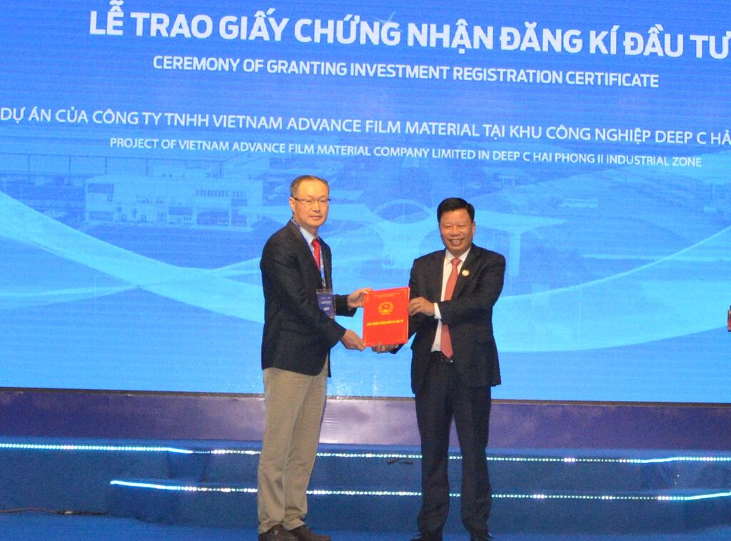 Lors du séminaire, le Comité de la gestion de la zone économique de Hai Phong a décerné le certificat d'investissement pour le projet de fabrication de films enveloppés dans des panneaux photovoltaïques (capital total de 98 millions d’USD) à DEEP C Hai Phong par la Sarl First Global Business.