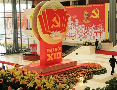 | À l'intérieur du Centre national de conférences de My Dinh, à Hanoï, où le XIIIe Congrès national du Parti s'est tenu du 25 janvier au 1er février. |