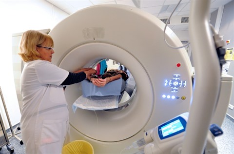| En 2013, une patiente subit un scanner au Centre Oscar Lambret, référence nationale en cancérologie à Lille (Hauts-de-France). |
