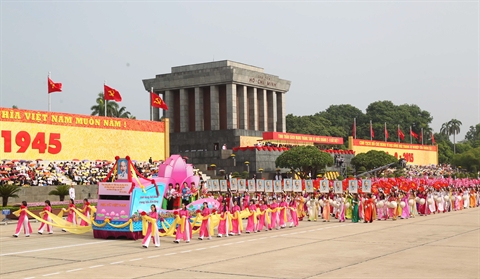 | Meeting, parade militaire et défilé en l'honneur de la fête nationale vietnamienne, le 2 septembre à Hanoi. |