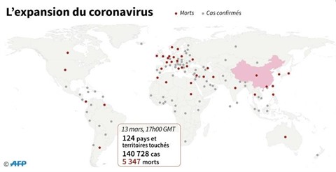 La pandémie a contaminé plus de 141.000 personnes dans plus de 124 pays et territoires.