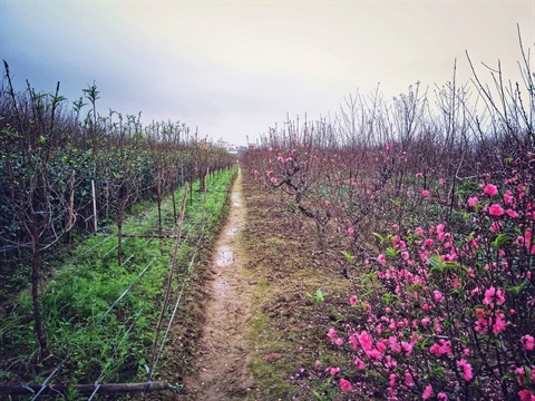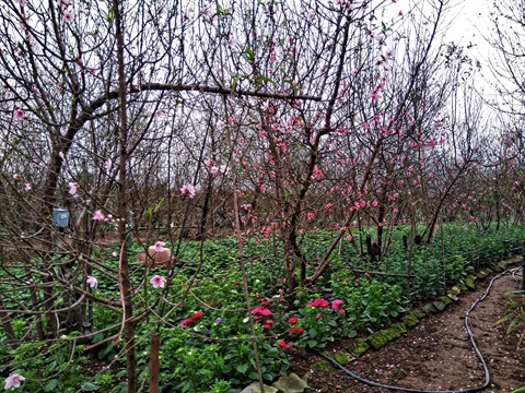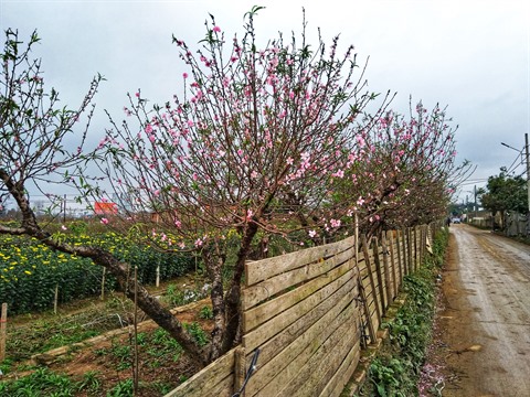 | À Nhât Tân, on plante pour l'essentiel des pêchers dits "bích" (de couleur rose foncée) et "phai" (de couleur rose pâle). |