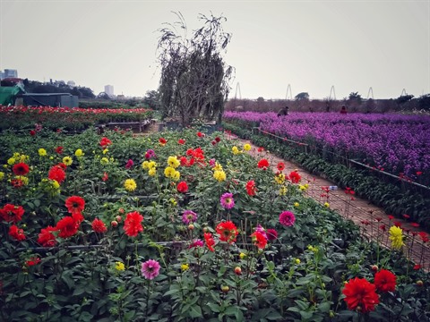| Les villageois cultivent d'autres fleurs d'agrément pour le Têt. |