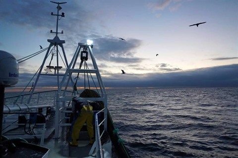 | Des pêcheurs à bord du Good Fellowship en mer du Nord, le 21 janvier. |