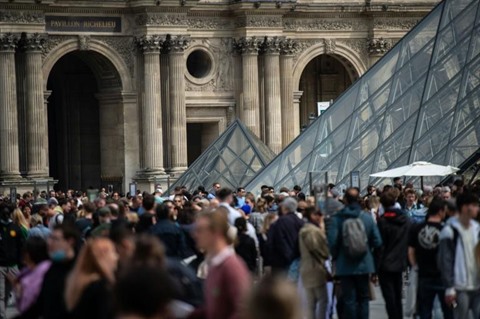 | Des visiteurs font la queue devant le musée du Louvre à Paris, le 29 avril. |