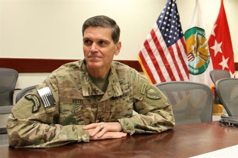 | Le général américain Joseph Votel dans une base indéterminée dans le Sud-Ouest de l'Asie le 27 octobre. |