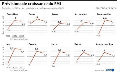 Le FMI estime néanmoins que l'inflation va retrouver ses niveaux d'avant pandémie d'ici mi-2022, à la fois dans les économies avancées et émergentes.