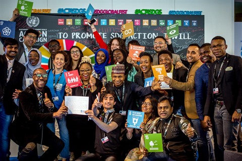 | Participants à un festival d'action pour le développement durable à Bonn, en Allemagne en 2018. |