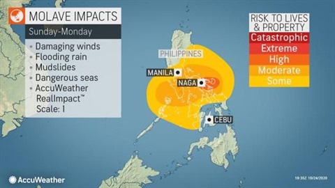 | Prévision météologique de l'arrivée de la tempête Molave, le 25 octobre. |