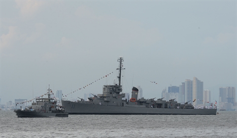 | Le bâtiment de guerre BRP Rajah Humabon (droite) et un patrouilleur philippin. |