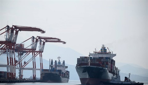 | Un cargo chargé de conteneurs remplis de déchets à destination du Canada, le 30 mai à Subic Bay, à Manille, aux Philippines. |