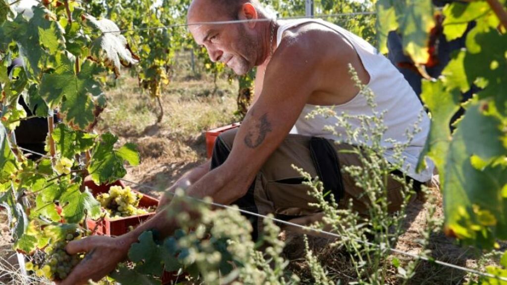 | Le vigneron Jean-Baptiste Duquesne à Saint-Pierre-de-Mons le 15 septembre. |