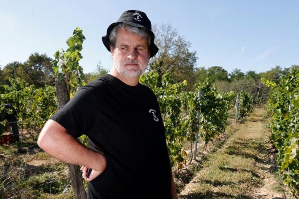 | Le vigneron Jean-Baptiste Duquesne à Saint-Pierre-de-Mons le 15 septembre. |