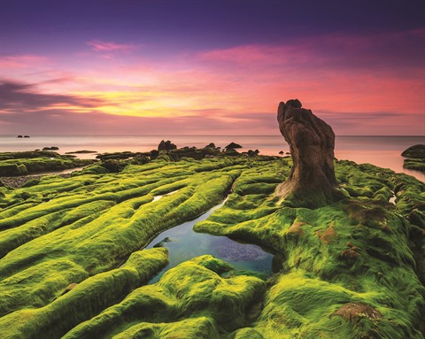 | Roches couvertes de mousses sur la plage de Cô Thach, province de Binh Thuân (Centre). |
