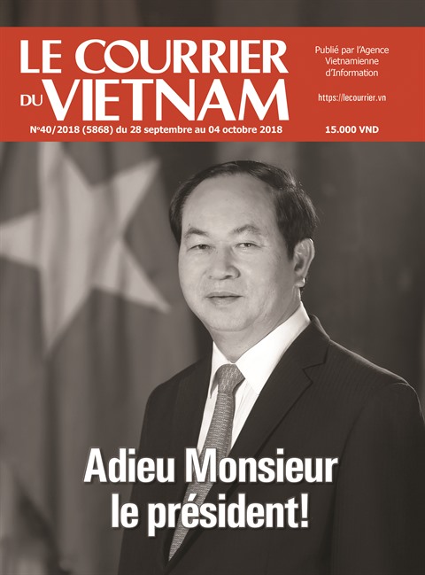 3. Numéro 40: Adieu Monsieur le Président! Avec une magnifique photo en noir et blanc, l’hebdo rend hommage à M. Trân Dai Quang, président de la République socialiste du Vietnam depuis le 2 avril 2016, décédé le matin du 21 septembre 2018 à l'Hôpital militaire central 108 à Hanoï.