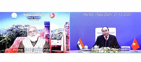 | Le Premier ministre Nguyên Xuân Phuc (droite) et son homologue indien Narendra Modi lors d'un entretien virtuel le 21 décembre. |