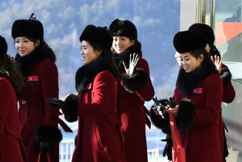 | Des pom-pom girls nord-coréennes, le 7 février en République de Corée. |